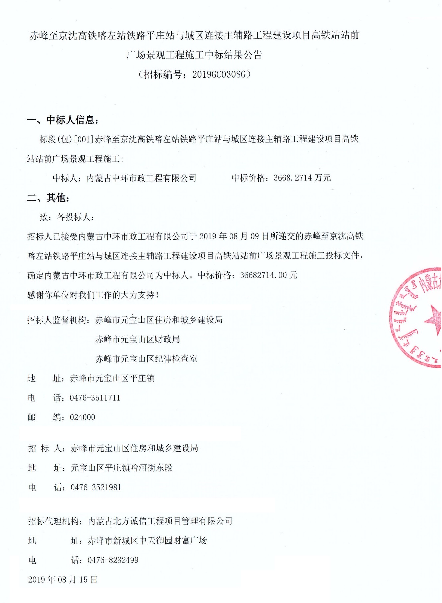 赤峰至京沈高铁喀左站铁路平庄高铁站站前广场工程