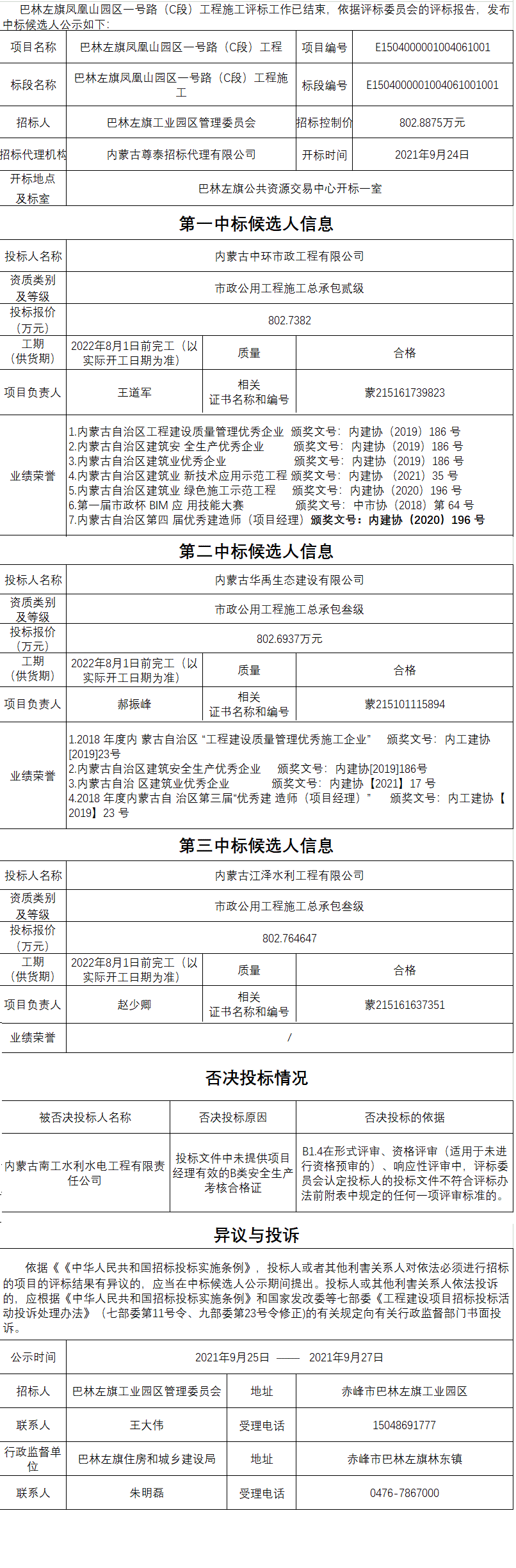 巴林左旗凤凰山园区一号路(C段)工程