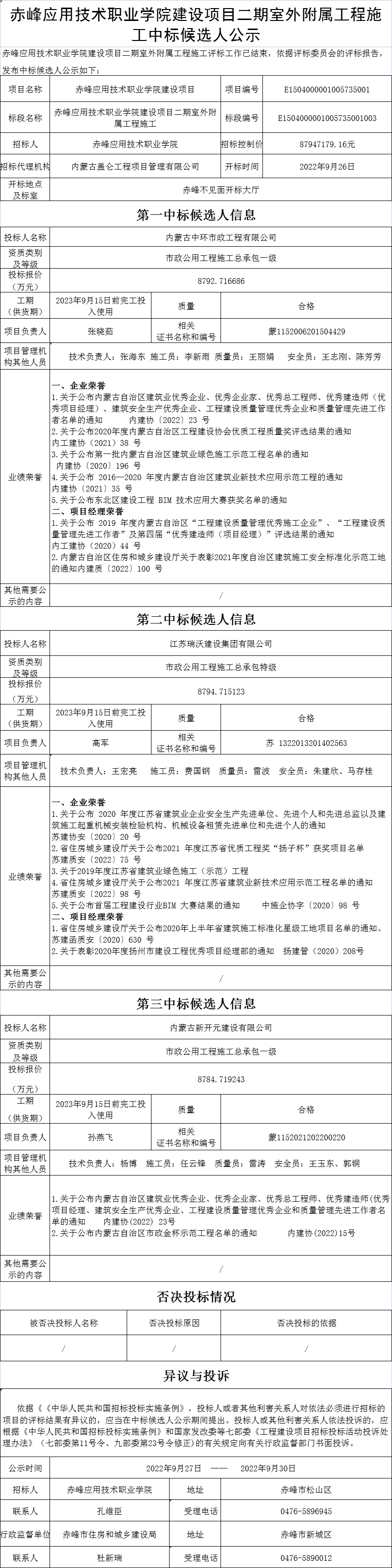 赤峰应用技术职业学院建设项目二期室外附属工程