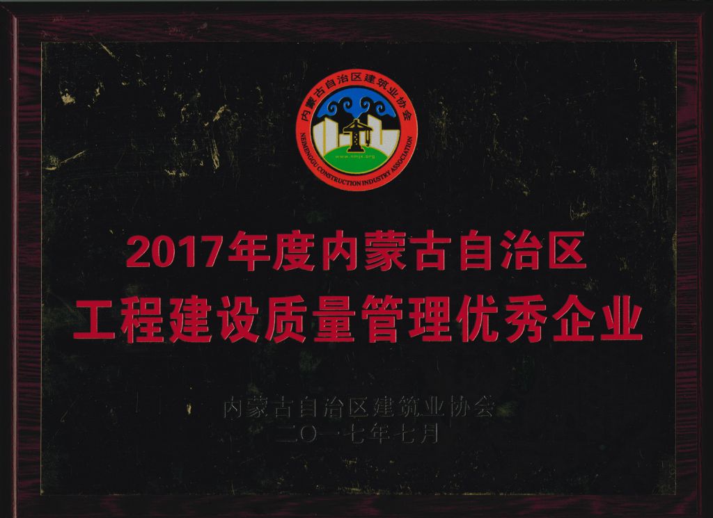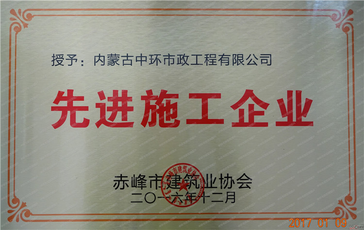赤峰市先进施工企业奖牌