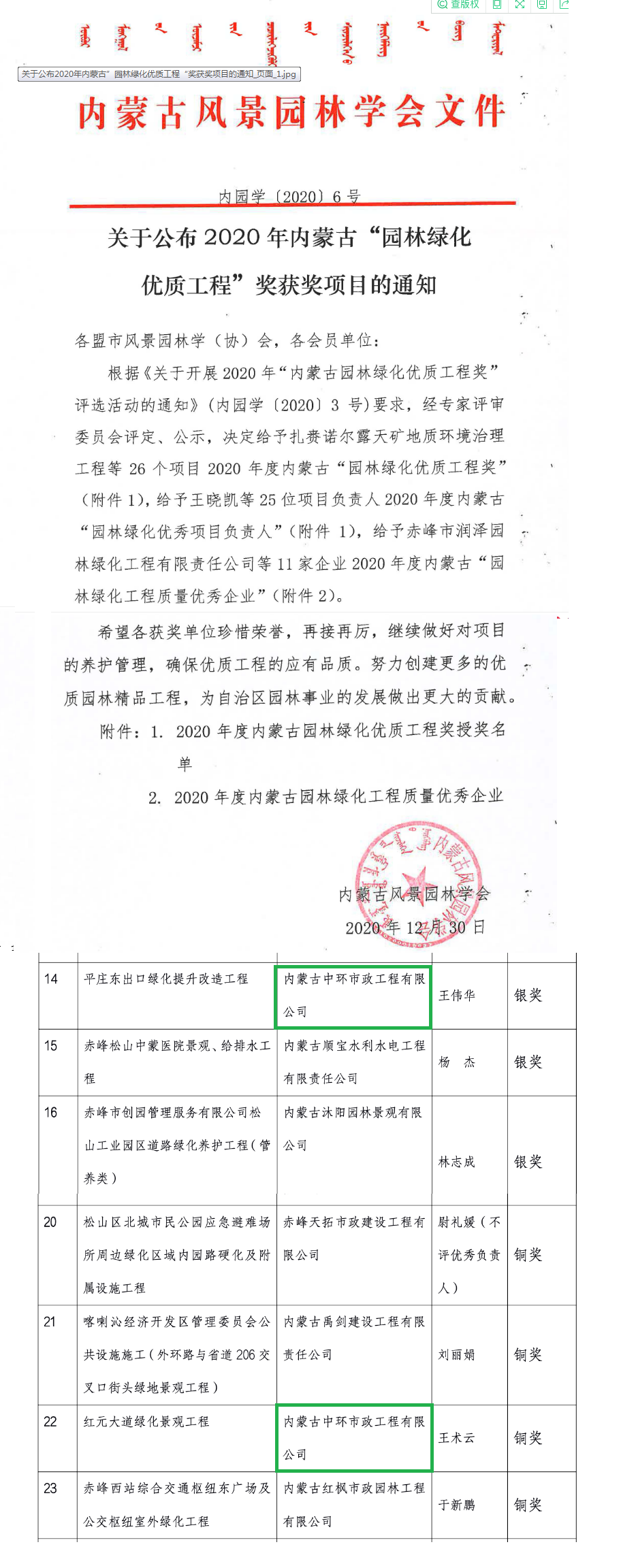 中环市政2项绿化工程获“园林绿化优质工程”奖