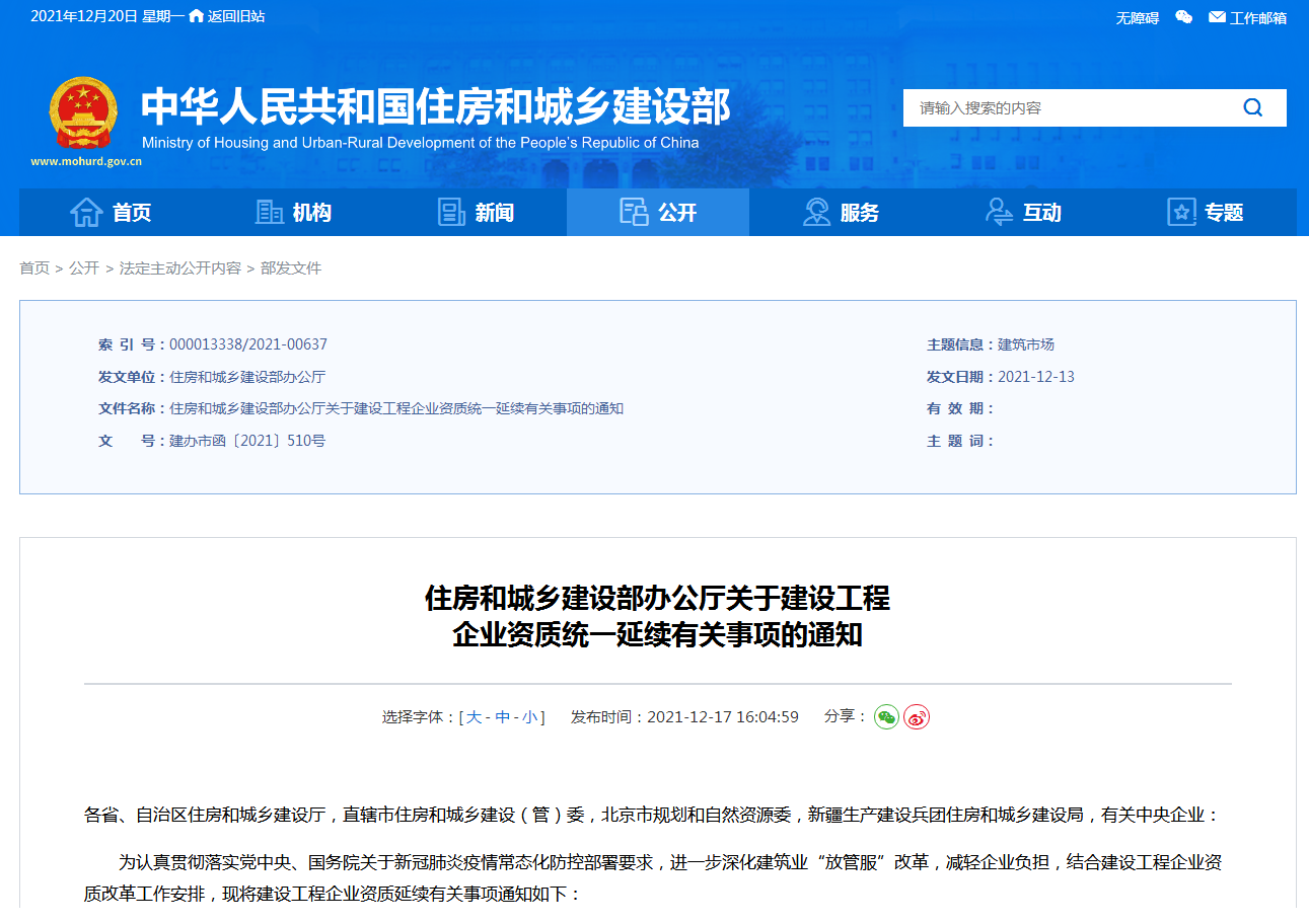 一、我部核发的工程勘察、工程设计、建筑业企业、工程监理企业资质,资质证书有效期于2021年12月31日至2022年12月30日届满的,统一延期至2022年12月31日。