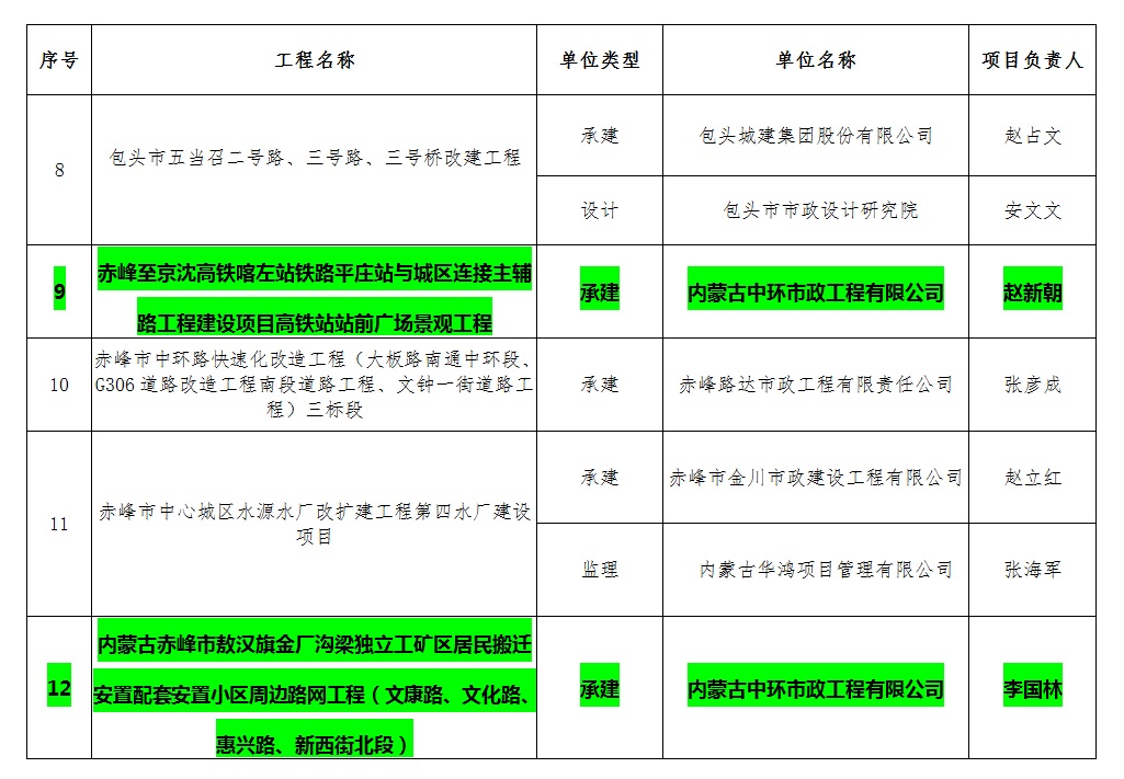 • 内建协〔2022〕15号文,根据《内蒙古自治区建筑业协会评奖管理办法》、《关于开展内蒙古自治区市政金杯示范工程评选工作的通知》(内建协〔2021〕107号)规定,经评审并公示,呼和浩特市东影南路下穿农大地道建设工程等36项工程荣获内蒙古自治区市政金杯示范工程,现予以公布。
