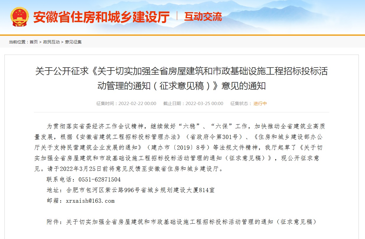 为贯彻落实省委经济工作会议精神,继续做好“六稳”、“六保”工作,加快推动全省建筑业高质量发展,根据《安徽省建筑工程招标投标管理办法》(省政府令第301号)、《住房和城乡建设部办公厅关于支持民营建筑企业发展的通知》(建办市〔20198号)等法规文件精神,现就切实加强全省房屋建筑和市政基础设施工程(以下简称“房建、市政工程”)招标投标活动管理有关事项通知如下: