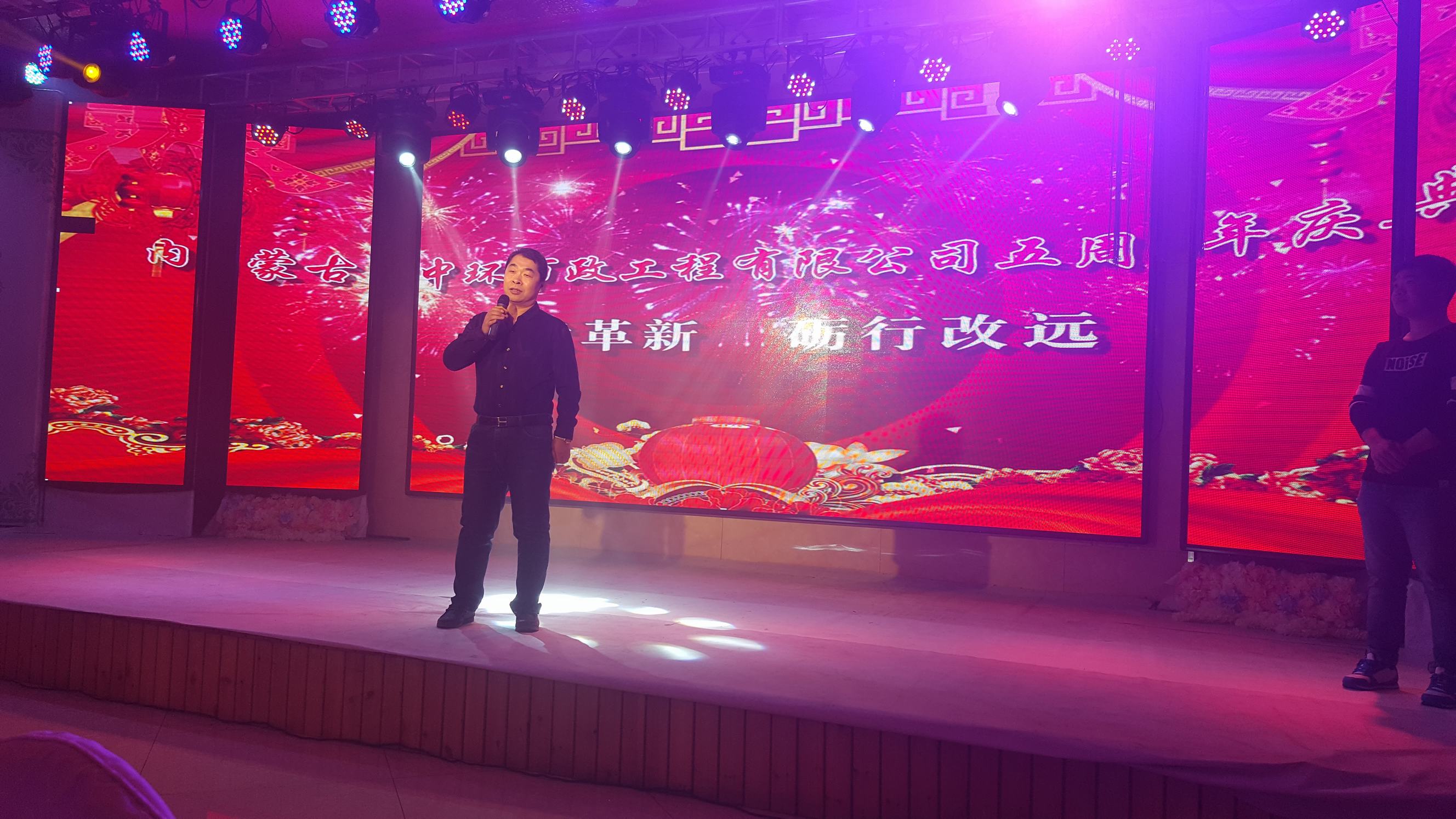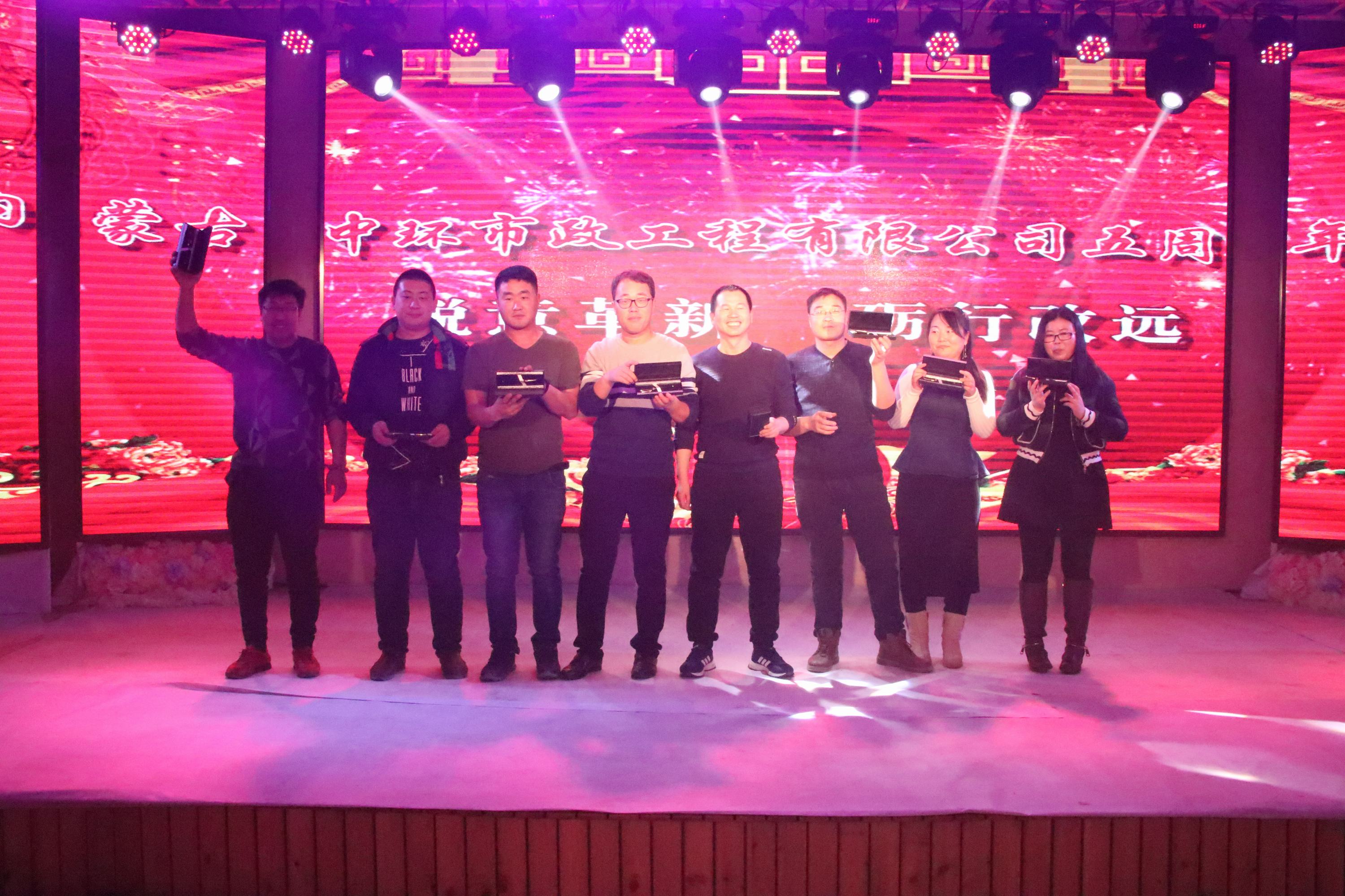 2018年1月18日,内蒙古中环市政工程有限公司隆重举办了公司五周年庆典活动暨公司年会。公司董事长兼总经理王道富介绍了公司近五年的发展历程、取得的工程业绩和公司获得的荣誉;公布了公司确定的下五年发展目标和努力方向。辛勤工作的员工在帅哥美女的主持下表演了他们利用闲暇时间准备的文艺节目,活动中公司的“情哥王子”、“港台巨星”、“相声大师”,亲密无间的小姐妹,患难与共的好兄弟,90后、80后、70后轮番上台,敞开胸怀,放飞心情,特别是安全员田树辉同志声情并茂的朗诵了自己书写的诗词“砥砺前行,拼搏奋进”更是把活动推向了高潮,惊呆了到场的所有员工和嘉宾,展现了我们工程人别样的风采。